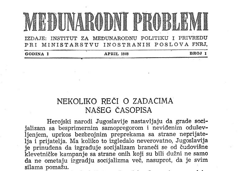 Scientific journal “Međunarodni problemi / International Problems“ represents the oldest academic publication of its kind in international relations domain in Serbia and the neighboring region. The Journal has been published continuously since 1949.