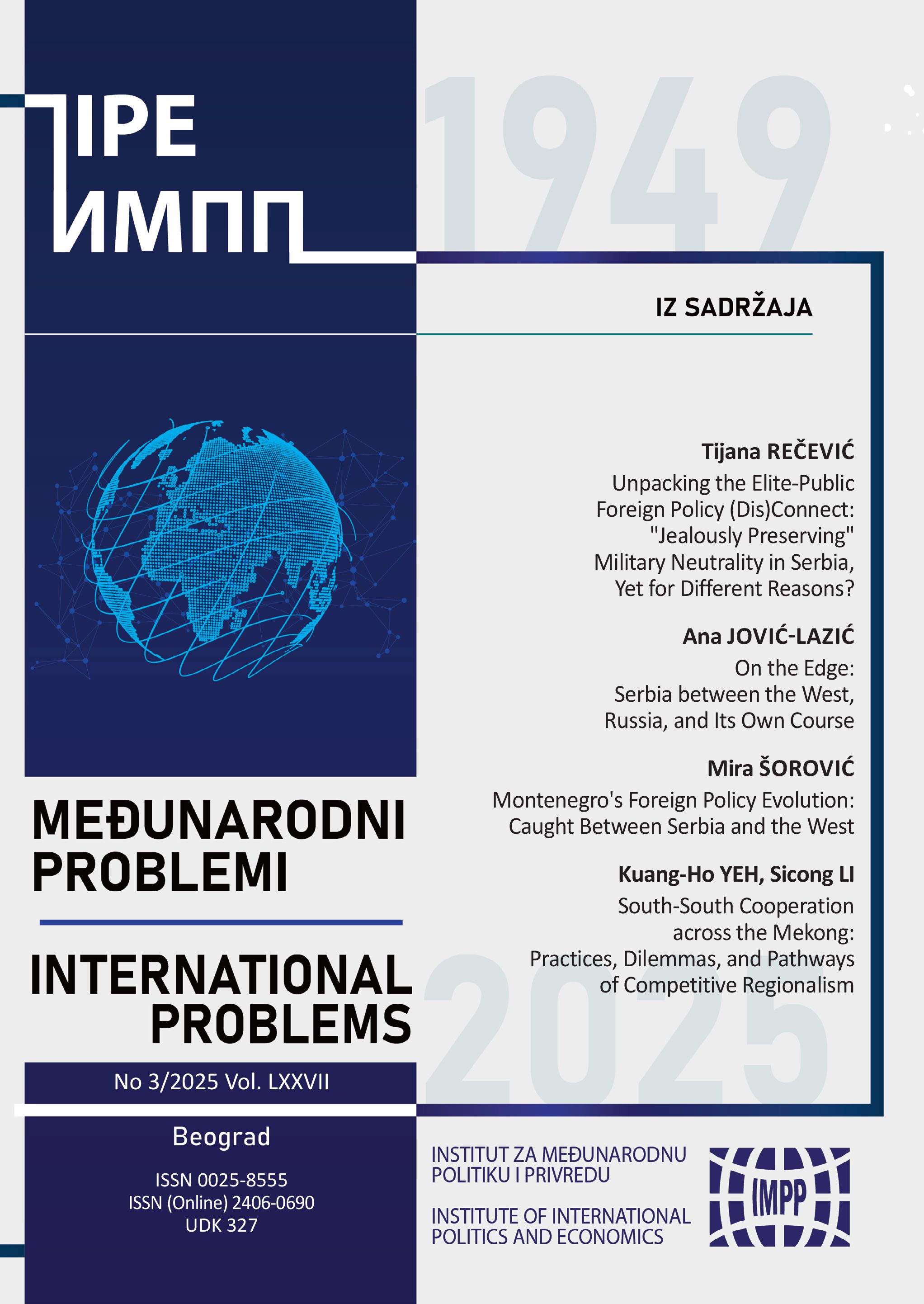 Poslednji broj: Međunarodni problemi Vol. 77 No. 3/2025