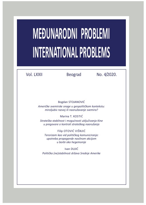 Рад анализира корелацију између сложених и вишедимензионалних међународних односа у 21. столећу и политичку стабилност на националном нивоу на примеру држава Средње Америке као историјски и стратешки важног подручја Западне хемисфере. Аутор указује на политичку (не)стабилност која се разматра и као општи феномен у економији и политици, и као посебан феномен који се односи на државе Средње Америке. Главни део анализе утврђује и констатује могуће чиниоце који доводе до политичке (не)стабилности држава Средње Америке. Статус ових држава одређен је значајним утицајем САД-а које су оставиле дубок траг током Хладног рата и након њега. Подршка САД-а даљем развоју капитализма током Хладног рата није дугорочно решила питање комуникације у домену јавне политике – битне за успостављање и одржавање политичке стабилности држава Средње Америке. Претензију САД-а да задрже примат у развоју капитализма, након Хладног рата, може довести у питање растући утицај Кине. Аутор закључује да постоји могућност да се државе Средње Америке ослободе доминантне улоге САД-а у развоју капитализма, под условом да се раст и утицај Кине након глобалне пандемије настави.